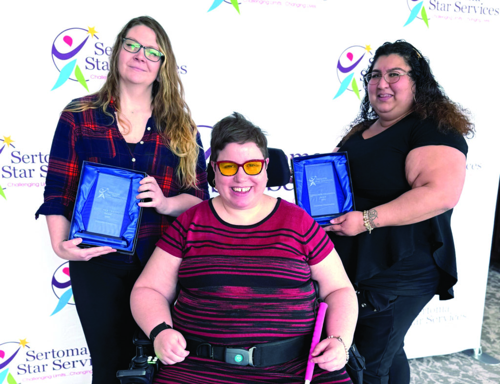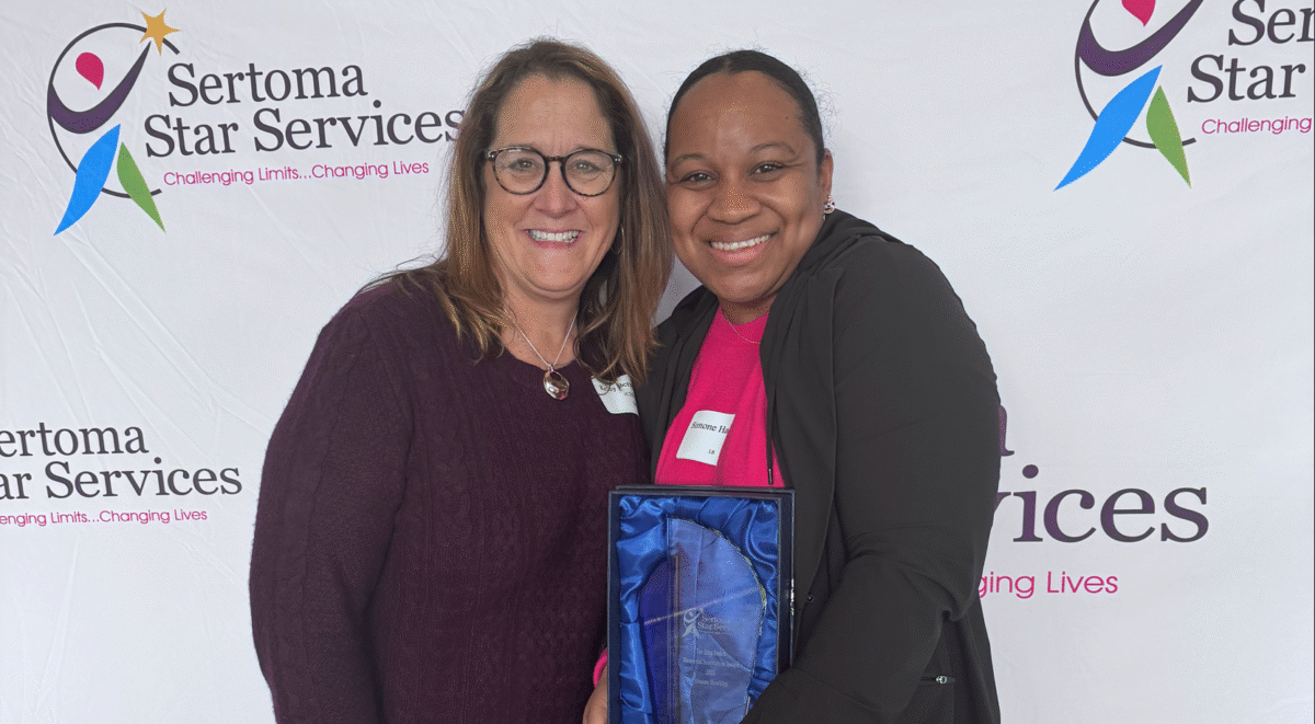 Created in memory of Sertoma Star Services’ former President/CEO, the Dan Strick Memorial Innovation Award honors employees who demonstrate creativity, forward thinking, and a commitment to improving the lives of those we serve. This year’s honoree is Simone Hawkins, Administrator of Positive Behavior Supports (shown above, right, with Sertoma Star Services President and CEO Kelly Berardelli).
